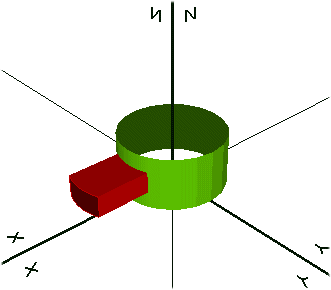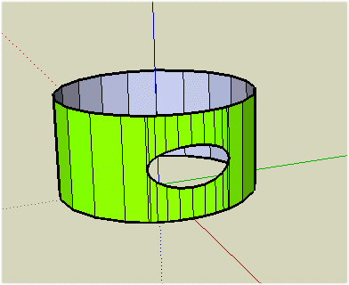 f2の値を1にすると、穴部分に別の面を作図する事も可能です。また、穴の回りにエッジの線分を作図し、それを選択状態にする事が出来ます。これをスイープしたり変換マトリックスを設定して投影・壁作成等をして、交差した円柱+角柱、円柱+円柱、という図形を作図することが出来ます。